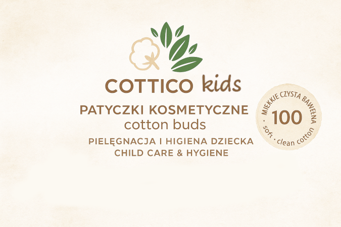Patyczki higieniczne Cottico dla dzieci to niezastąpiona pomoc w codziennej pielęgnacji maluszka – łączą troskę o zdrowie, komfort i naturę.
