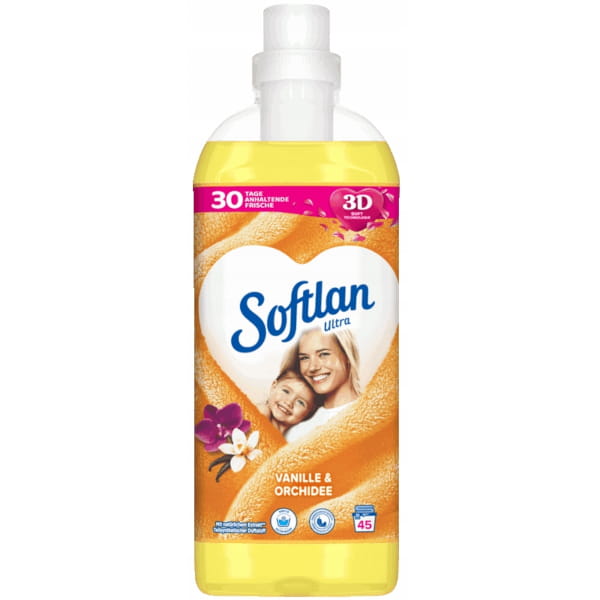 Płyn SOFTLAN Vanille&Orchidee to produkt przeznaczony do płukania tkanin w pralkach automatycznych oraz podczas prania ręcznego, który dzięki swojej skoncentrowanej formule jest wyjątkowo wydajny i wystarcza nawet na 34 prania. Płyn posiada przyjemną, słodką kompozycję zapachową na którą składają się nuty egzotycznej orchidei oraz smakowitej wanilii.